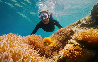 Discover vibrant coral reefs teeming with tropical fish and marine life along the pristine waters of this Caribbean island.