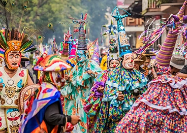 A vibrant festival blending music, dance, costumes, and spectacular parades.